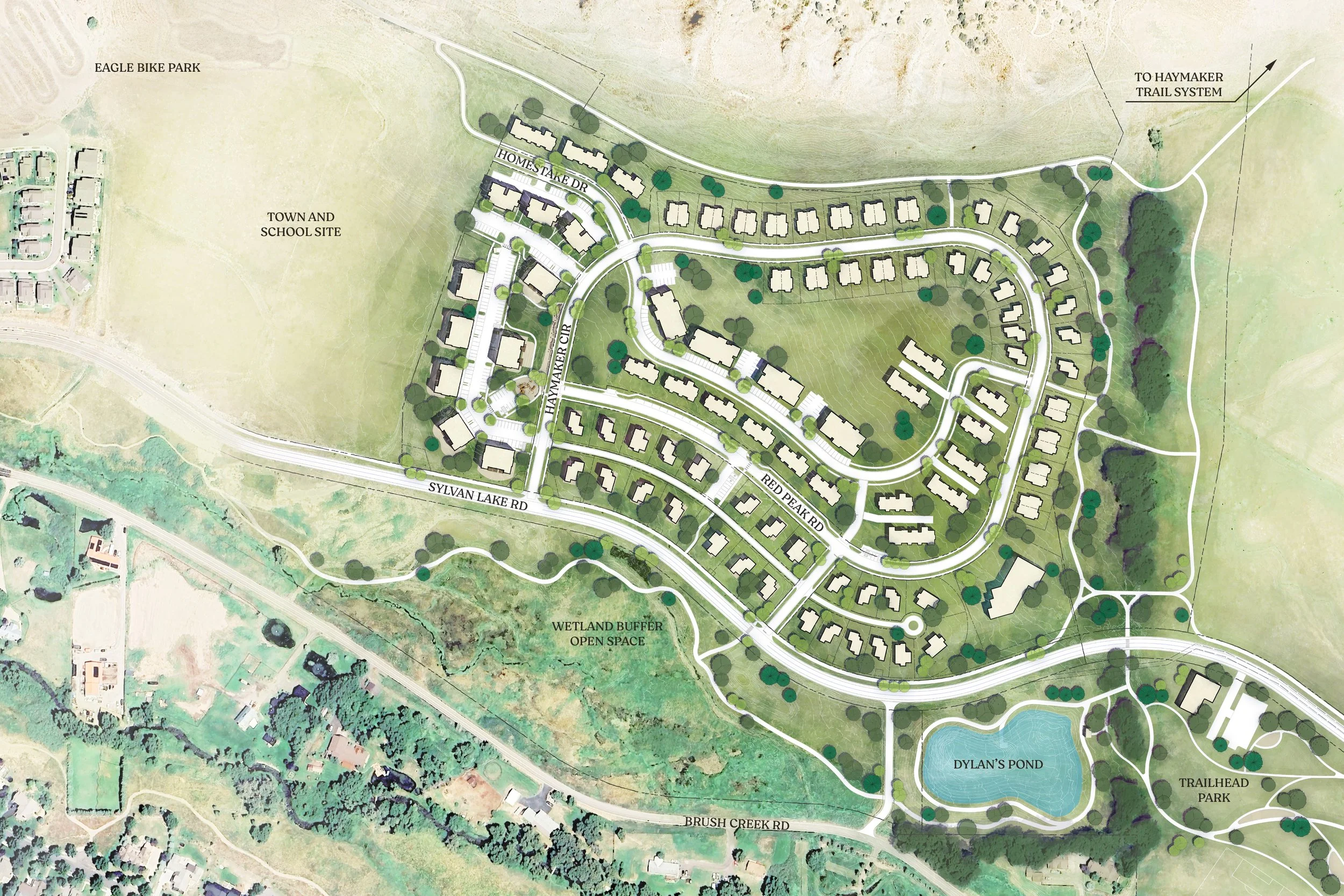 Haymeadow offers a range of homes that blend with the natural landscape. Single-family luxury homes, townhomes, cottages, and duplexes are thoughtfully designed to reflect the beauty of the meadow. Large windows frame mountain views, while natural materials connect each home to its surroundings.